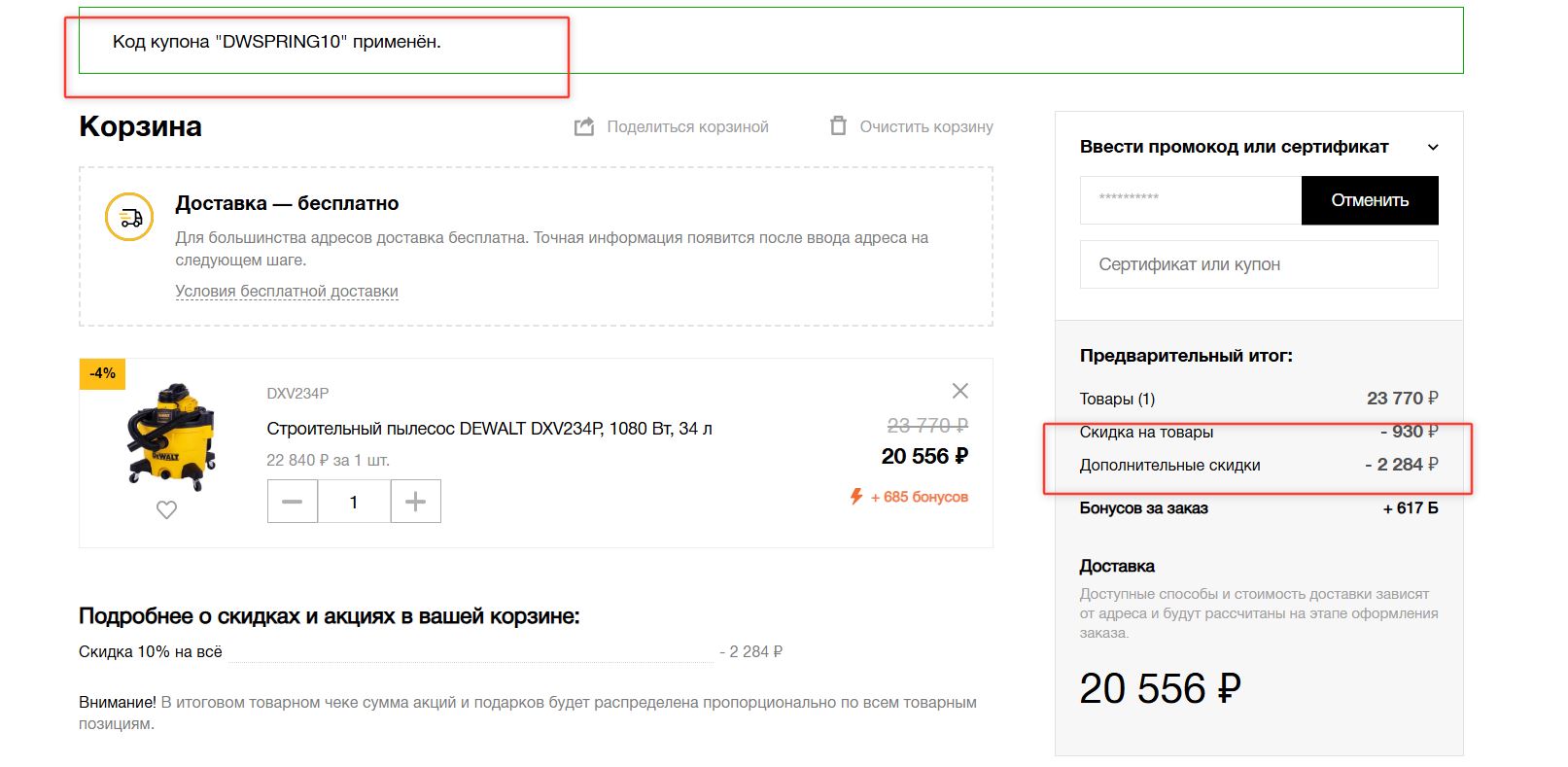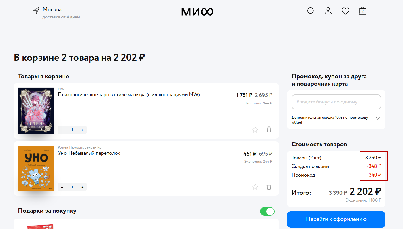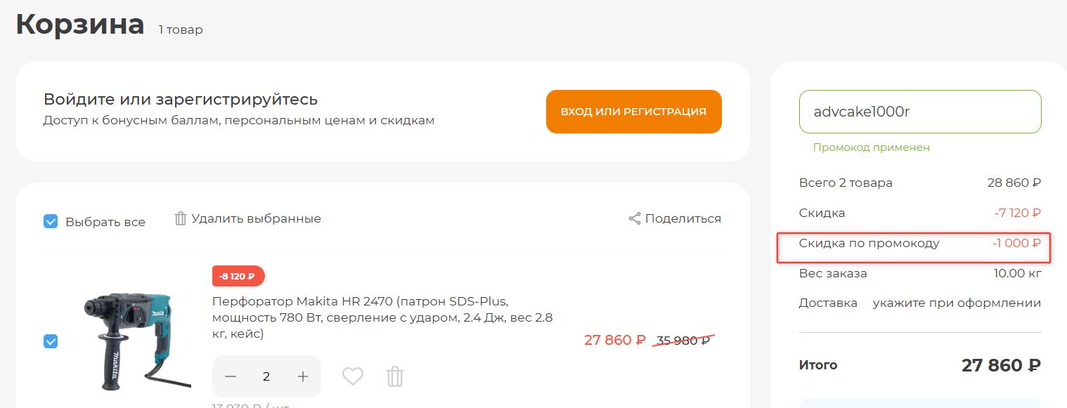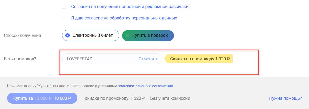 Нажмите на кнопку «Открыть промокод» или «Открыть акцию».