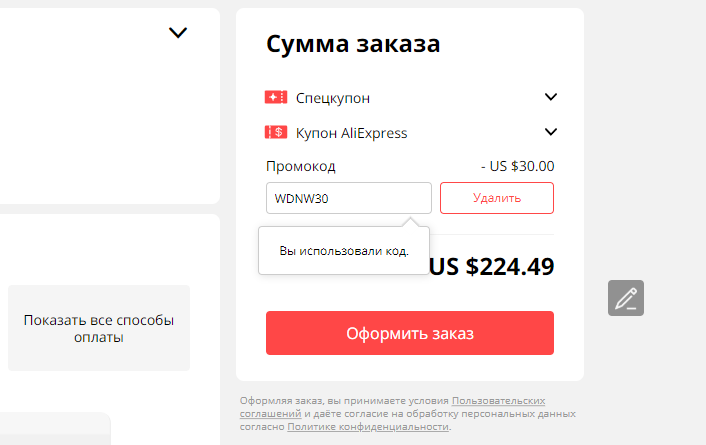 При оформлении заказа вставьте код и получите дисконт.