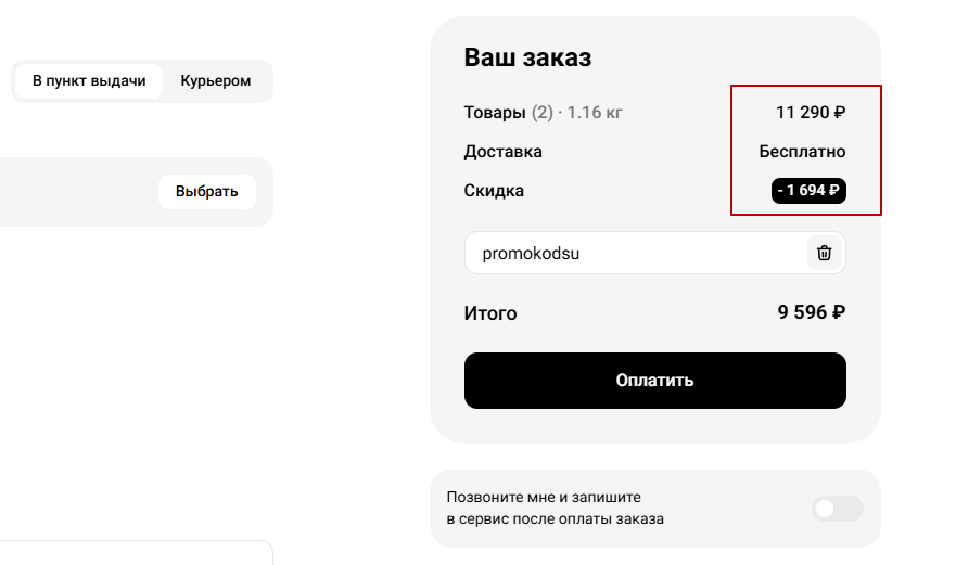 Скидка составит 10% от стоимости корзины, но не более 2500 рублей за заказ. Бонус действует при оплате банковской картой.