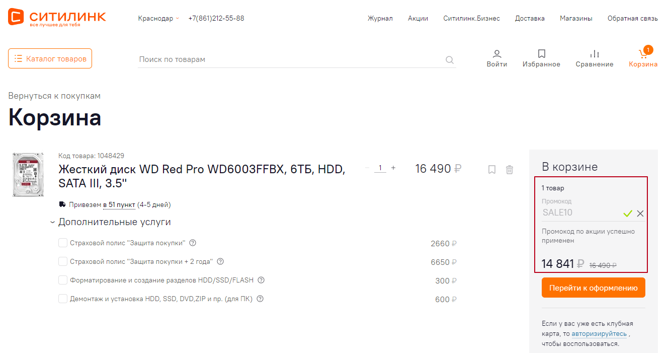 Скидка 10% на жёсткие диски Western Digital Red по промокоду при заказе онлайн.