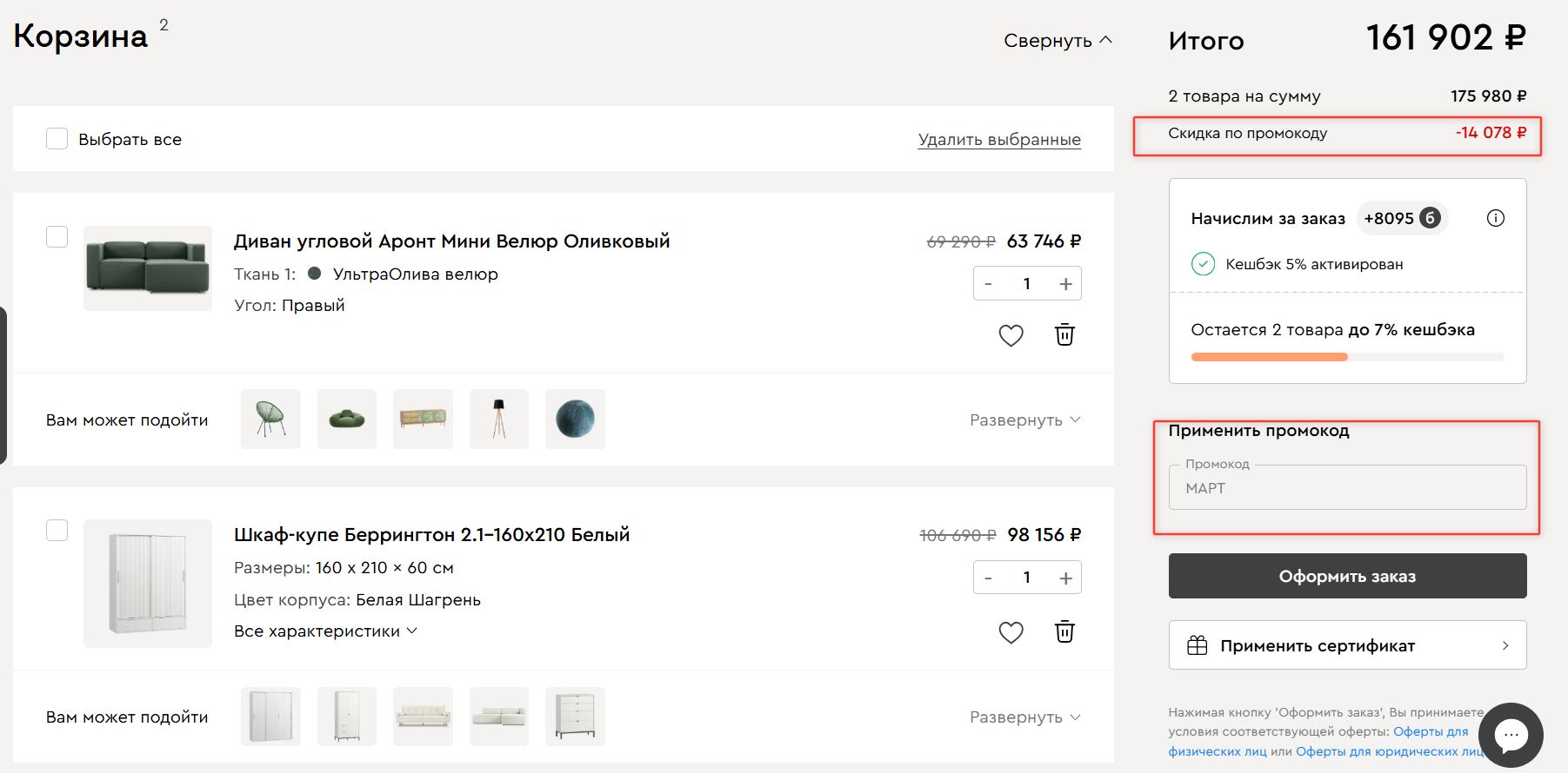 Заказывайте диваны, кромати, тумбы, шкафы, кресла, лампы и другие предметы интерьера с дополнителньой скидкой 7%.