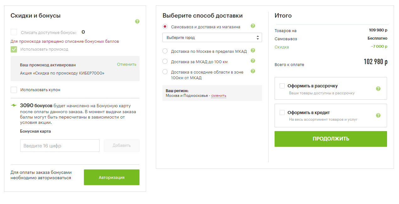 Специальные условия в интернет-магазине при покупке бытовой техники на сумму от 50 тысяч рублей.