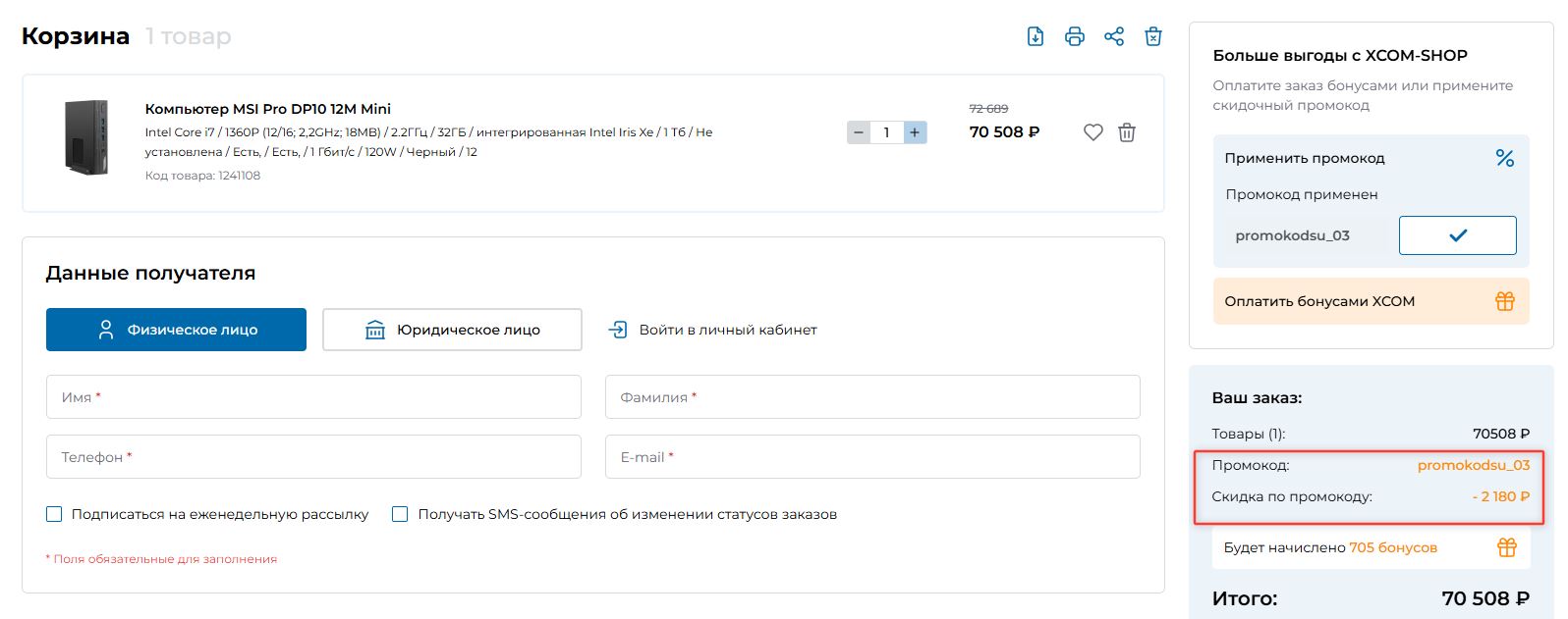 Скидка срабатывает на весь ассортимент ПК, комплектующих, электроники из каталога магазина.