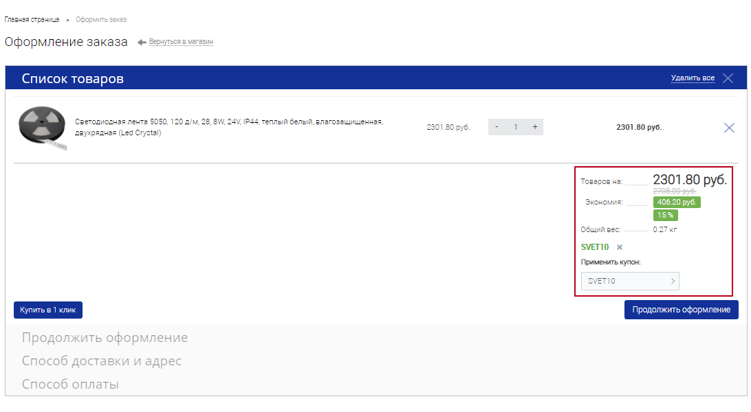 Промокод 10% на все светодиодные ленты