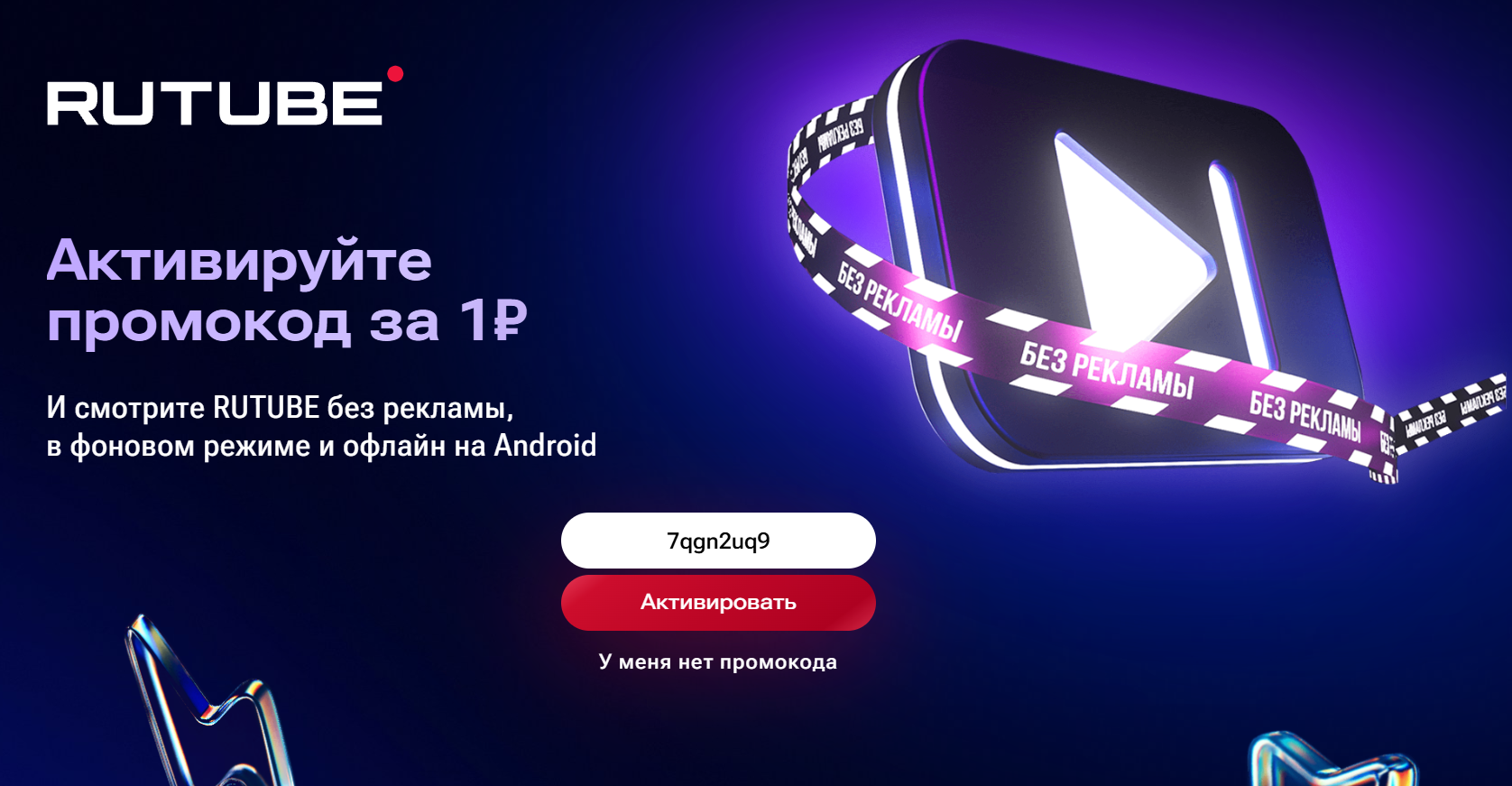 Воспользуйтесь промокодом и получите 10 дней доступа к сервису RUTUBE за 1 рубль, акция для всех пользователей без активной подписки, далее 99 рублей.