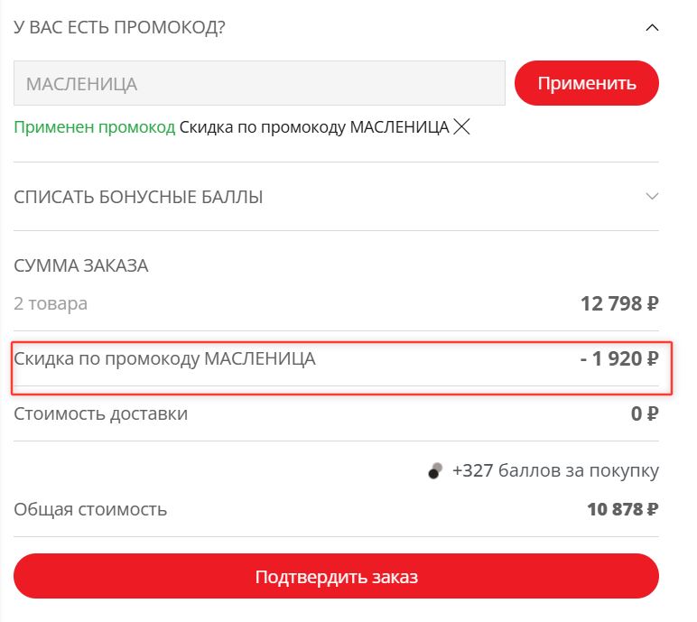 Действующий промокод только на покупку через сайт компании, кроме товаров по распродаже. Минимальная стоимость заказа 3000 рублей.