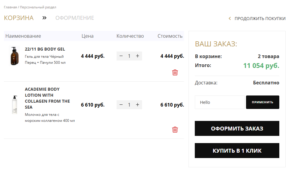 Скидка 10% на заказ по уникальному коду на весь ассортимент косметических средств из каталога. Промокод не суммируется с другими акциями.