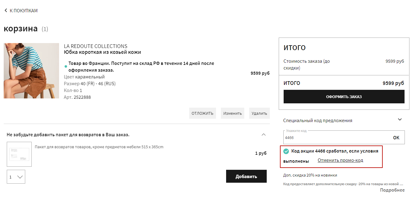 Скидка 10% на любой заказ с сайта, предложение не распространяется на раздел сейл и наборы, промо не суммируются с другими акциями.