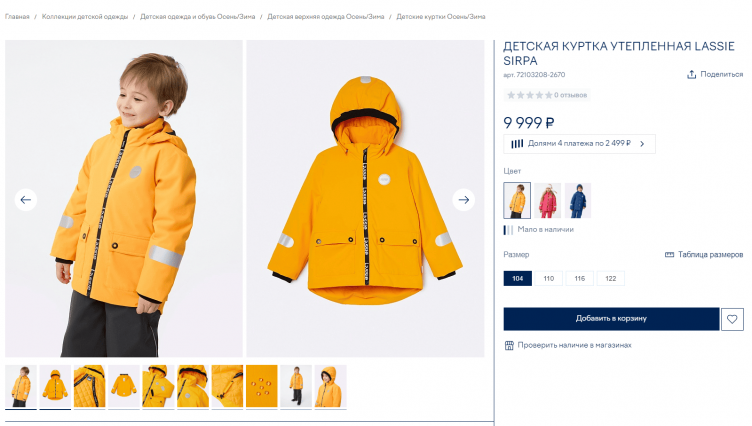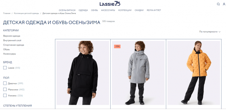 Официальный интернет-магазин известного финского бренда Lassie предлагает своим покупателям большой выбор детской одежды и обуви для девочек и мальчиков. Вся продукция компании тестируется по нескольким параметрам. Надёжность и качество товара подтверждают соответствующие европейские сертификаты. На сайте магазина вы сможете купить верхнюю одежду, толстовки, брюки, свитера, куртки, комбинезоны, сапоги, кеды и многое другое. Каталог удобно рассортирован по возрастным группам, что облегчает поиск нужной вещи. Промокод Lassie позволяет сэкономить на покупках, достаточно активировать секретный код на скидку для расчета дисконта при оформлении заказа.