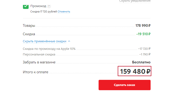Покупайте технику из новогодней подборки, найдите промокод в карточке товара и введите его в специальное поле во время оформления заказа.