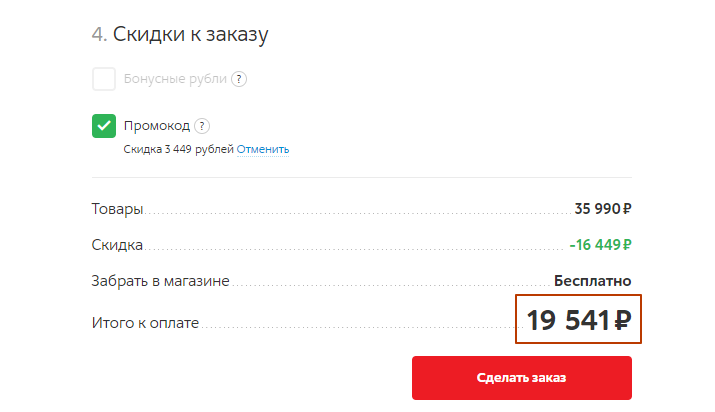 Действует только онлайн в корзине при оформлении заказа на сайте магазина.