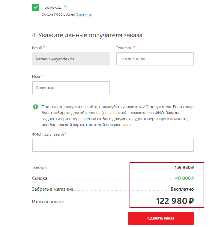 Акция срабатывает при заказе бытовой техники и электроники на сумму от 50000 рублей.
