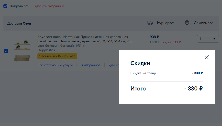 Дополнительная скидка 106 рублей на набор полок