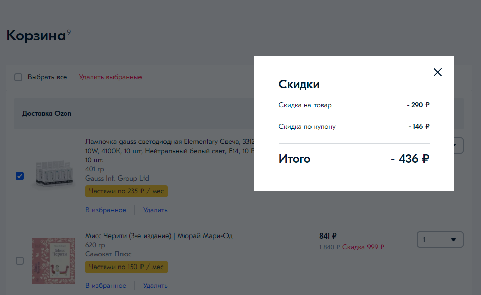 Скидка 10% на освещение по купону