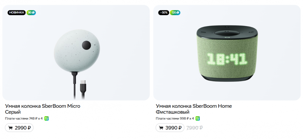 Выгода 15% на умные устройства Sber. Скидка действует от рекомендованной розничной цены и не распространяется на категорию товаров «Умное кольцо».