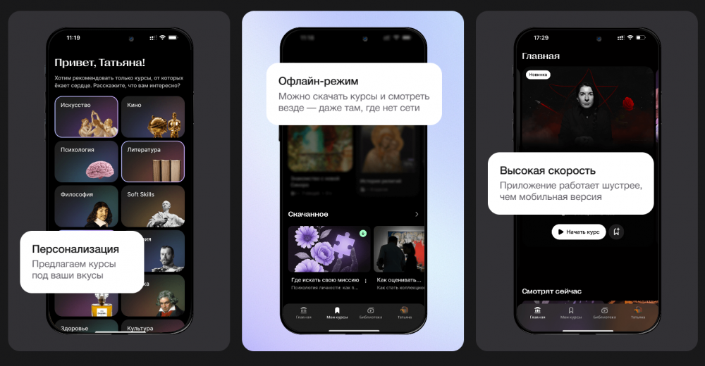 Изучать искусство, психологию, историю, архитектуру, философию, религию, моду и дизайн можно в веб-версии synchronize.ru или через официальное приложение школы.