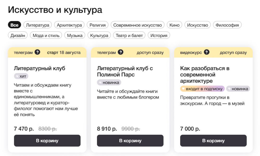 Акция на курсы: Литературный клуб, Литературный клуб с Полиной Парс и Как разобраться в современной архитектуре.