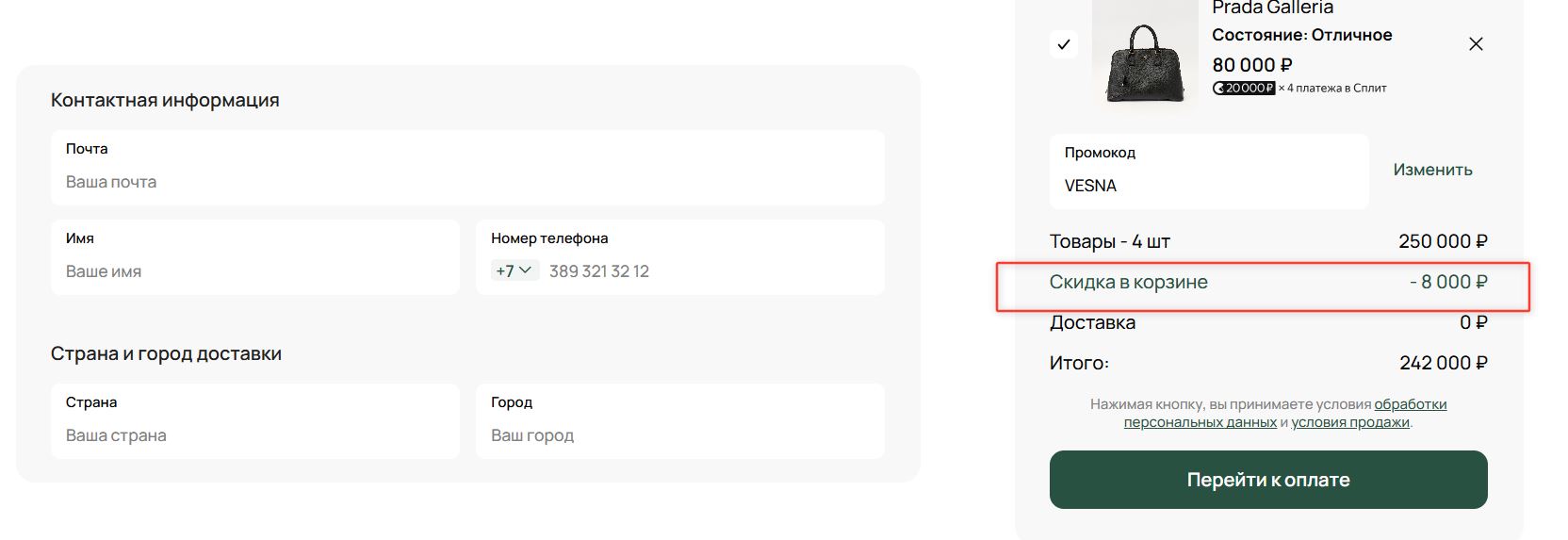 Скидка 10% на чек от 50000–200000 рублей сработает после авторизации через Сбер ID.