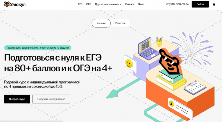 Онлайн-школа Умскул проводит дистанционную подготовку к ЕГЭ и ОГЭ. Обучение проходит по таким дисциплинам, как математика, обществознание, история, литература, английский и немецкий языки, биология, химия и физика, география. Каждый преподаватель объясняет материал по специальной методике. Промокод Умскул позволяет получить дополнительную скидку на образовательные программы сервиса. Для новичков доступен бесплатный базовый курс по любому предмету. Оплатить занятия можно банковской картой онлайн.