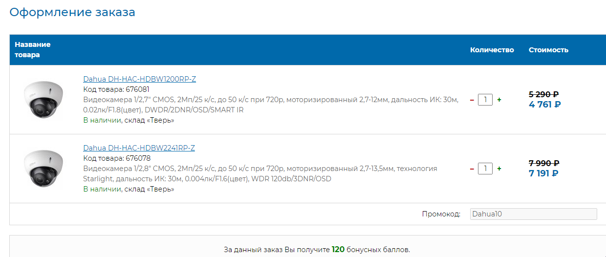 Промокод на оборудование Dahua со скидкой 10%