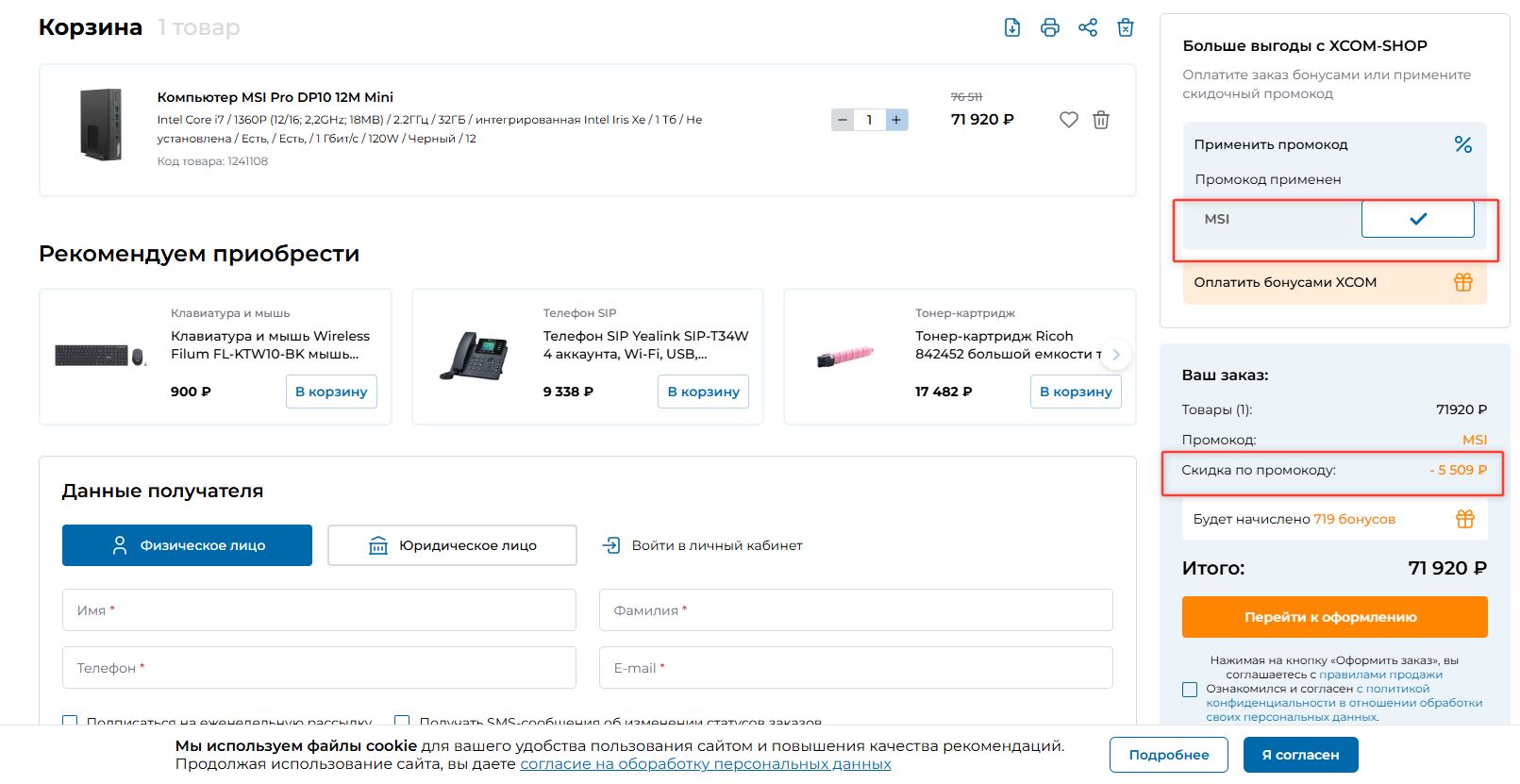 При покупке моноблоков и компьютеров от бренда MSI скидка по купону составит 6%.