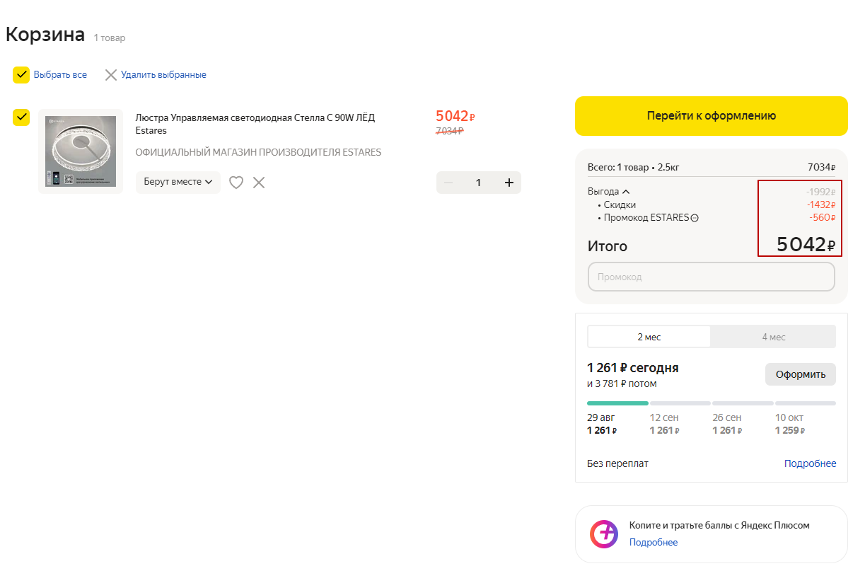 Скидка 10% на освещение по купону