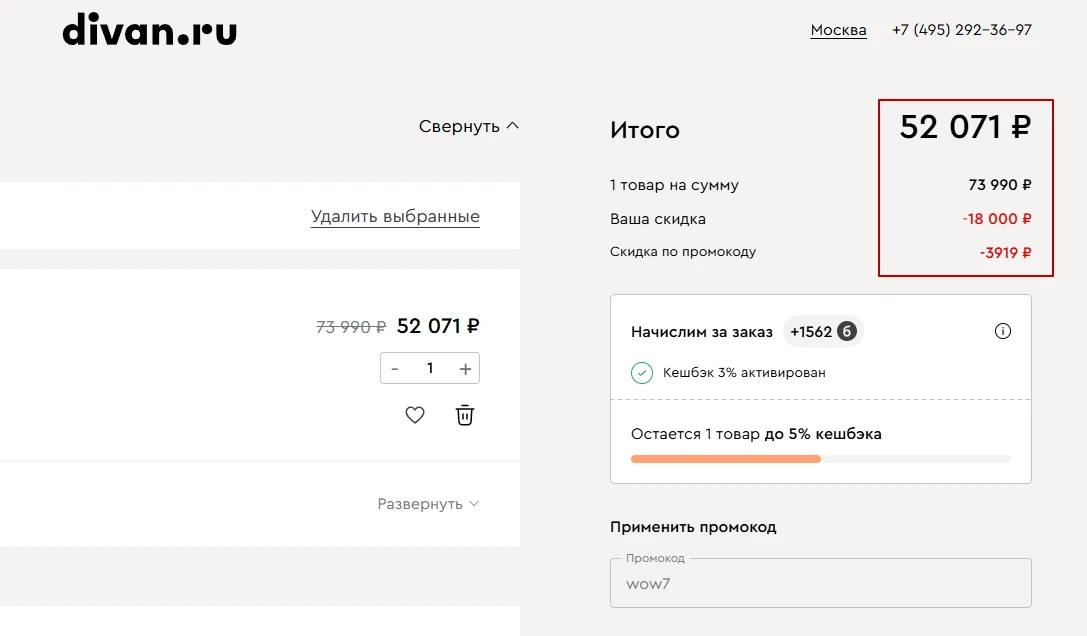 Минус 7% по промокоду на готовые решения и модели с индивидуальным дизайном. Акция распростаняется в том числе на позиции со скидкой.