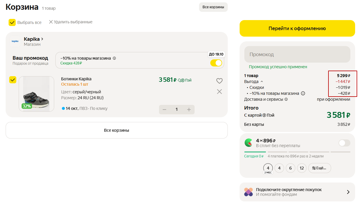 Нажмите на кнопку «Открыть промокод» или «Открыть акцию».