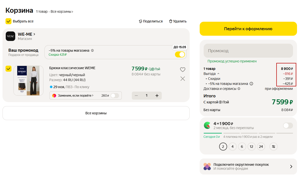 Совершите покупку любых моделей одежды на сумму от 8000 рублей и получите бонус в размере 14% на все товары в корзине.